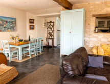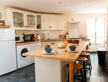 Référence3-room house 120 m2 on 2 levels. Comfortable and cosy furnishings: living/dining room with TV, international TV channels and wood-burning stove. Exit to the terrace. Open kitchen (4 hot plates, oven, dishwasher, microwave, freezer, electric coffee machine, cooking island). Sep. WC. Upper floor: gallery with 1 bed (90 cm, length 190 cm). 1 room with 1 french bed (140 cm, length 190 cm). 1 room with 1 french bed (140 cm, length 190 cm). Exit to the balcony. Shower/WC. Electric heating. Terrace 8 m2. Terrace furniture, barbecue. Facilities: washing machine. Internet (WiFi, free). Please note: non-smoking house. Smoke alarm. Instead of an enclosed bedroom, some sleeping areas are located in an open-plan area (gallery, alcove, etc.).