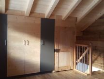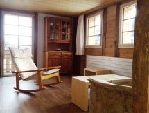Référence40 m2. More information by the provider: Very nice, new chalet ideal for couples. The chalet has 1 bedroom, kitchen, living room, bathroom, storage room and a small sleeping alcove for a child. It has a parking lot and is located in the district Margeli. You can enjoy a wonderful mountain view. The landlords live on the farm, which is located next to the small chalet. Towels are included. Bed linen are each CHF 15.00We rent a new, romantic, rustic Stöckli small chalet close to the farm in the countryside. You can expect a living room with sofa (extendable) rocking chair, TV, radio and wireless internet. A small kitchen with fridge, oven, 2 hotplates, dishwasher and coffee machine. On the upper floor there is 1 bedroom with double bed, a small sleeping alcove for 1 mattress or a camping bed and 1 bathroom with shower and toilet + washing machine. For the clothes, it has a spacious closet. Balcony with view of the mountains soiwe very quiet seat. Parking available. It also has a storage room for skis and bicycles. Pets on request. Ideal is the chalet for couples or a family with a child (two children on request). Bus stopp near by.Towels are included. For the bed lines you pay CHF 15.00 each.
