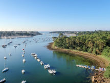 Accommodatie Nr.Breizh Riviera, 4-room house 130 m2 on 2 levels. Spacious and bright, modern and tasteful furnishings: living/dining room with open-hearth fireplace, dining table, satellite TV, international TV channels and flat screen. Exit to the terrace, to the swimming pool. 1 room with 1 french bed (180 cm, length 200 cm), shower and double hand-basin. Open kitchen (oven, dishwasher, 3 induction hot plates, toaster, kettle, microwave, freezer, electric coffee machine) with dining table. Sep. WC. Upper floor: 1 room with sloping ceilings with 1 french bed (160 cm, length 200 cm). 1 room with sloping ceilings with 2 beds (90 cm, length 200 cm). Bath/WC. Electric heating. Parquet floors. Large terrace 100 m2, south facing position. Terrace furniture, barbecue (portable), deck chairs (4). Facilities: washing machine, dryer, iron. Internet (WiFi, free). Please note: non-smoking house. 1 pet/ dog allowed. Smoke alarm.