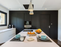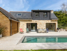 Modern, beautiful, comfortable house Breizh Riviera. In the hamlet Pen ar Valenec 3 km from the centre of Bénodet, 16 km from the centre of Quimper, 16 km from the centre of Concarneau, in a quiet position, 4.5 km from the sea, 4.5 km from the beach, in the countryside. Private: well-kept garden 1'300 m2 (not fenced) with lawn and trees, swimming pool heated, secured (7 x 3 m, depth 150 cm, seasonal availability: 01.Apr. - 31.Oct.). Parking (for 3 cars) on the premises, single garage. Shop 3.5 km, grocery 3.5 km, supermarket 3 km, restaurant 3 km, bar 3.5 km, bakery 3.5 km, bus stop 800 m, sandy beach Plage du Trez 4.2 km, thermal baths Thalasso Benodet 4.4 km. Sports harbour 4 km, marina 4 km, golf course (18 hole) 1.5 km, surf school 4.7 km, sailing school 5 km. Nearby attractions: Pointe de Mousterlin 7.6 km, Île Tudy 14 km, Pont l'Abbé 14 km, Concarneau, Ville Close 20 km, Pont Aven 32 km, Embarcadère Archipel des Glénan 4.3 km.