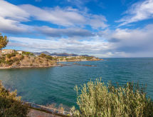 Cau del Llop: First row from the sea single-family house Villa Cassiopee. 1.5 km from the centre of Llançà, in a quiet, sunny position, 10 m from the sea. Private: garden 450 m2 with trees. Shopping centre 1.5 km, restaurant 1.5 km, bus stop Ayuntamiento Llançà 2 km, railway station Llançà 2.6 km, pebble beach 250 m. Golf course (18 hole) 17 km, tennis 800 m. Groups of teenagers on request only. Direct access to the beach from the house. It is possible to swim 10 m away, from the rocks.