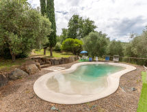 Rustic house Casetta Pescine, detached, surrounded by trees. 2 apartments in the property. 1 km from the centre of Sasso d´Ombrone, 8 km from the centre of Paganico, in a secluded, quiet position, 50 m from the edge of the forest, 50 km from the sea, in the countryside. For shared use: garden (not fenced), swimming pool (depth 5 - 150 cm, seasonal availability: 01.Jun. - 30.Sep.). Garden furniture, barbecue, pool maintenance by the owner/gardener. 1.3 km long motor access (via unmade road). Parking at the house. Grocery 1 km, supermarket 8 km, restaurant 1 km. Nearby attractions: Cinigiano 10 km, Campagnatico 20 km, Montalcino / Val d´Orcia 29 km, Grosseto 30 km, Castiglione della Pescaia 50 km. Please note: car recommended.
