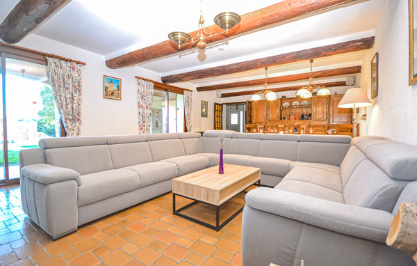 In de omheinde, goed onderhouden tuin kunt u perfect genieten van de Provençaalse lucht. U kunt ook ontspannen op het overdekte terras op de begane grond of op het zonneterras op de bovenverdieping. Airconditioning alleen in de woonkamer. Twee koelkasten, oven met convectie en diverse keukenapparatuur. Toegang tot de kamers op de bovenverdieping via de garage.