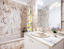 Accommodatie Nr.2-room apartment 60 m2 on 3rd floor. Practical and comfortable furnishings: living/dining room with 1 sofabed and cable TV. Exit to the terrace. 1 room with 1 french bed. Open kitchen (oven, 4 ceramic glass hob hotplates, microwave, freezer, electric coffee machine). Bath/bidet/WC. Boiler (50 litres). No heating option. Terrace 20 m2. Terrace furniture, deck chairs (2). View of the sea. Facilities: washing machine. Internet (WiFi). A-38-4-0004431