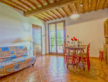 Accommodatie Nr.2-room apartment 38 m2 on 2 levels. Rustic furnishings: living/sleeping room with 1 double sofabed, dining table and satellite TV. Open kitchen (3 gas rings). Upper floor: 1 room with 1 double bed. Shower/WC. Gas heating. Patio. Terrace furniture, barbecue. Facilities: baby cot. Internet (WiFi, free). Please note: maximum 1 pet/ dog allowed. Private entrance. IT049007B4PUUF384N