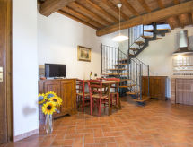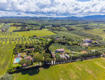 Beautiful residence Podere Tre Termini, surrounded by fields and vineyards. 12 apartments in the residence. 5 km from the centre of Cecina, 7 km from the centre of Bibbona, 5 km from the sea. For shared use: property, well-kept garden lawn and trees, swimming pool (14 x 7 m, seasonal availability: 12.May. - 15.Oct.). Outdoor shower, pool maintenance by the owner/gardener. In the house: washing machine (for shared use, extra). Roofed, parking. Supermarket 4 km, shopping centre 4 km, restaurant 3.5 km, sandy beach Marina di Cecina 5 km, thermal baths Calidario 34 km. Nearby attractions: Bolgheri 11 km, Livorno 45 km, Pisa 65 km. The photo is just an example.